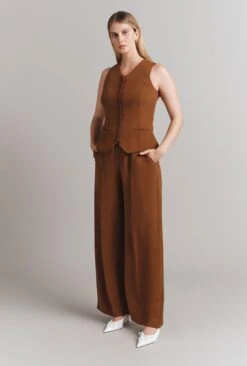 - The companion to our Piper jacket, the Alexa trousers are a clean-cut wide-leg style with a slight bootcut, making them perfect when worn with heels. Slanted side pockets and crease detailing down the front of the legs complete the crisp tailored look. Made from satin-back crepe and fully lined, they have a zip fastening with a double hook and bar closure at the waist. Pair with a simple camisole and the Piper jacket for a contemporary bridal look.