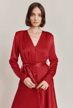 Say hello to your new go-to blouse – Efie. In a range of beautiful colours and crafted from our signature satin crepe, Efie features simple straight sleeves, a round neckline to frame the face and front button detail. Pair with out Ella Trousers for the complete look.