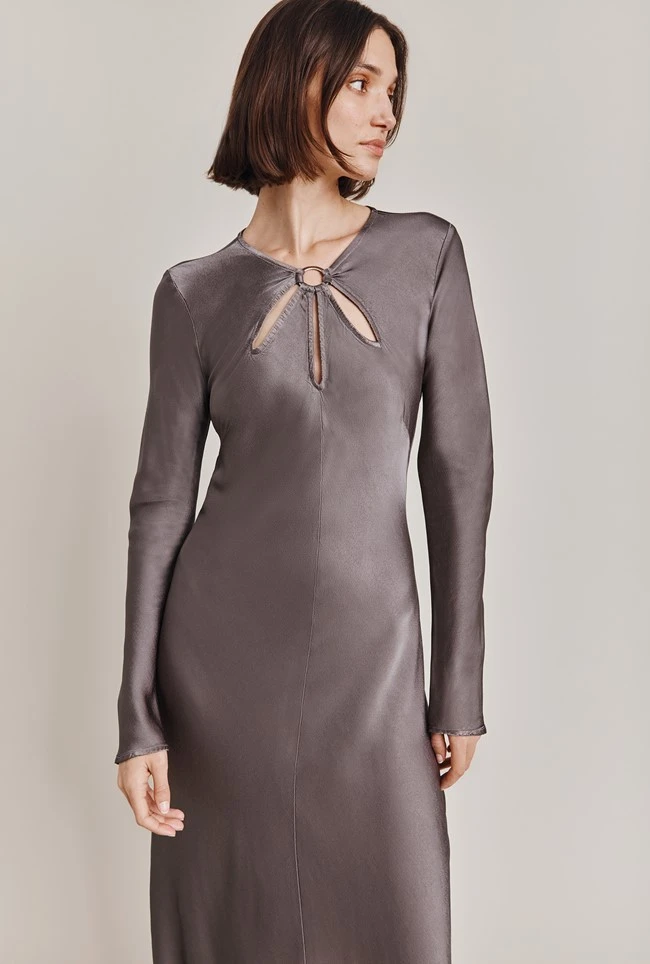 We love this simply yet stunning style crafted from our sustainable Ecovero in in grey. With long straight sleeves, Freya is a classically elegant midi dress with gorgeous cut-out detail just below the neckline. Wear yours with your favourite heels and a signature clutch bag.